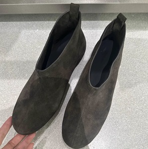 羊皮版~复古小众绒面圆头平底瘦瘦靴小短靴女2025秋冬季百搭裸靴