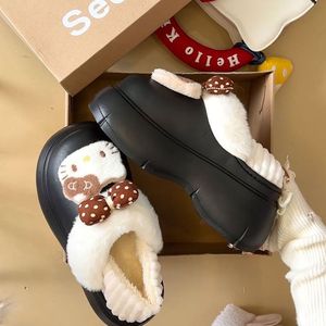 厚底增高可爱卡通棉鞋女2025年冬季加绒加厚保暖舒适一脚蹬毛毛鞋