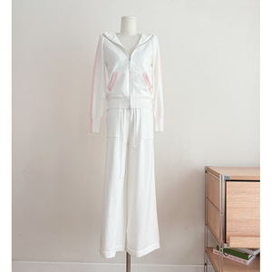 香香白富美套 连帽白撞粉针织开衫长裤套装早秋气质休闲