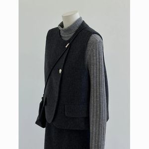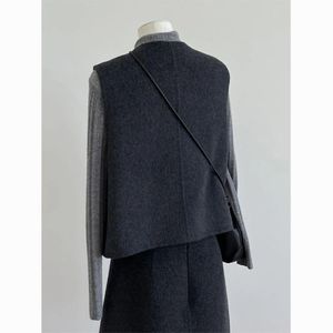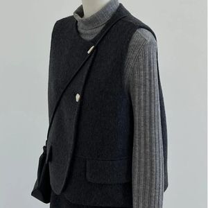 秋冬韩系小众设计感通勤圆领叠穿毛呢外套女小个子短款无袖马甲潮