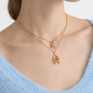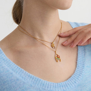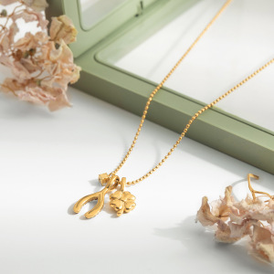 万兴锆石四叶草感恩节幸运骨不锈钢项链配饰女首饰轻奢风跨境饰品