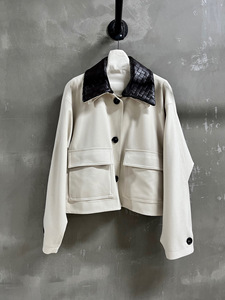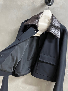 跨境跨境欧美女装速卖通B*V真皮编织方领高支高密面料短款外套