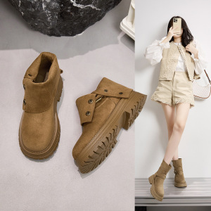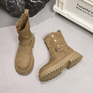 底两穿中筒靴女2025秋冬新款爆款大黄靴英伦风马丁靴百搭潮酷短靴
