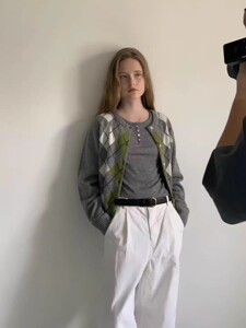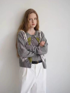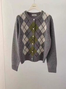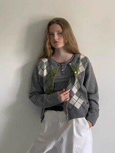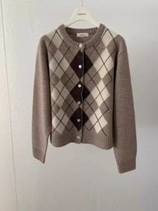生C 韩国GABRIELLE东大门2025秋季百搭菱格拼色针织开衫外套上衣