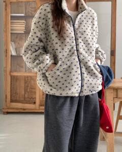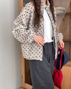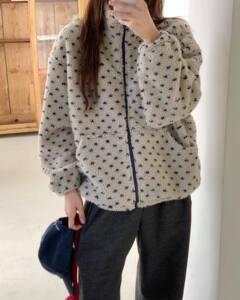 现加厚chic百搭小众点点羊羔毛卫衣外套