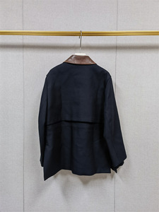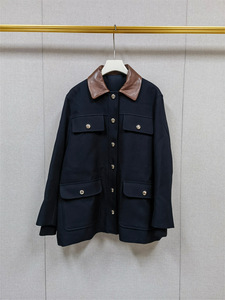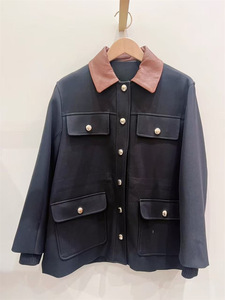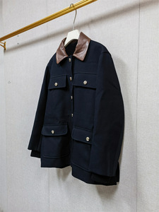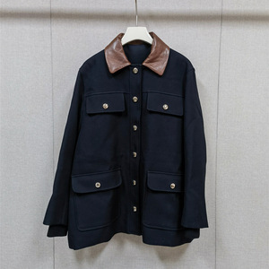 法式小众2025秋冬新款巴恩风皮领撞色抽绳收腰夹克外套