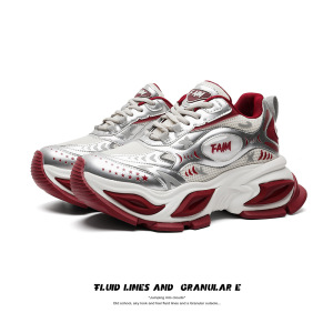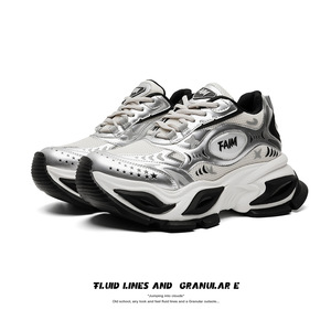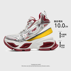 隐形10cm增高鞋液态银老爹鞋男女款网面厚底百搭情侣鞋子休闲潮鞋