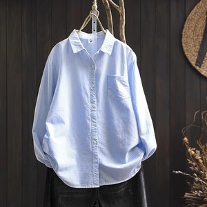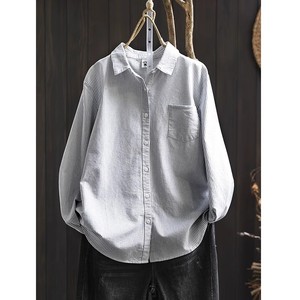 棉质灰色条纹衬衫女长袖小个子秋季新款宽松休闲内搭叠穿打底衬衣