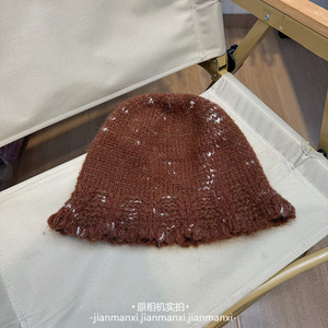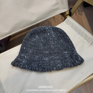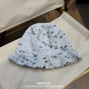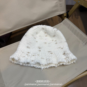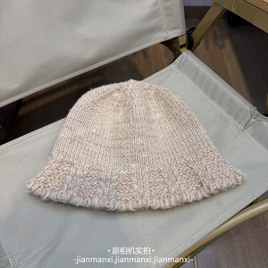 韩版可爱混色针织毛边针织帽子女秋冬新款学院风奶油甜美保暖渔夫