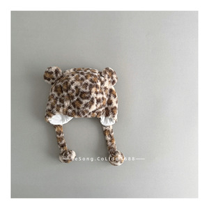 婴幼儿帽子秋冬保暖豹纹熊耳可爱超萌加绒男女宝宝护耳帽套头帽