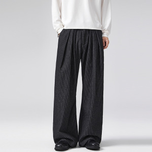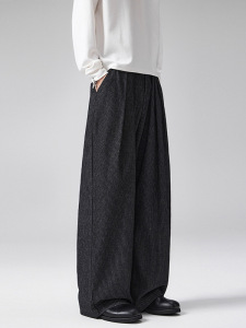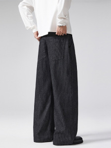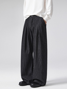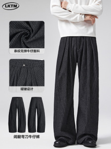 LKTM男装 老钱风三褶条纹弯刀牛仔裤男女高级感阔腿通勤休闲西裤