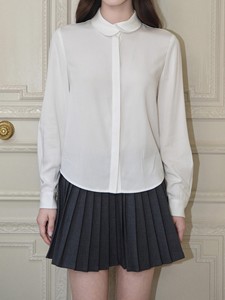 avenemet/交叠领法式衬衫/天丝醋酸娃娃领长袖衬衣灯笼袖上衣女