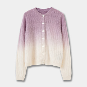 BS25新款秋季紫色絮语渐变羊毛针织开衫圆领长毛软糯风 1H25BANI