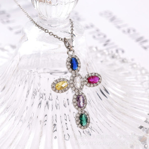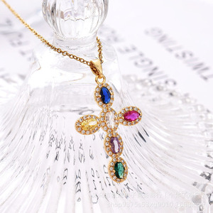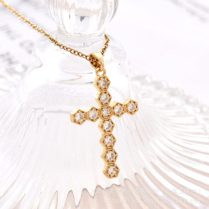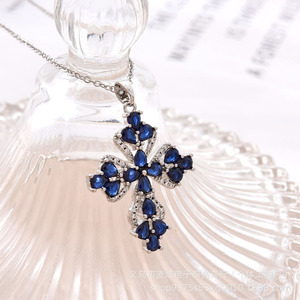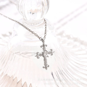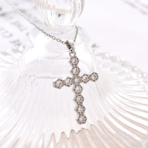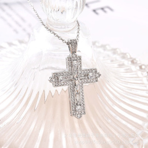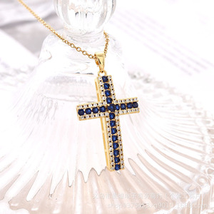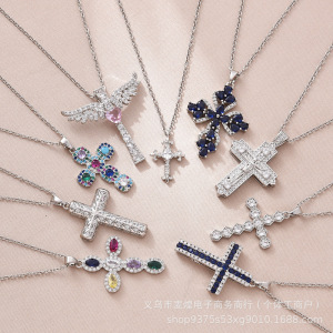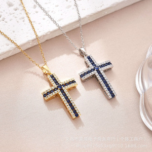 欧美女式宗教饰品铜微镶锆石十字架吊坠创意个性项链节日礼物批发