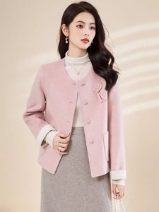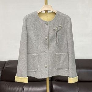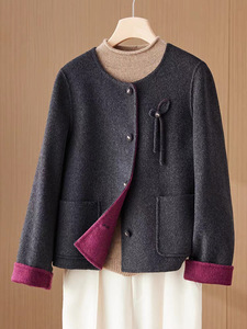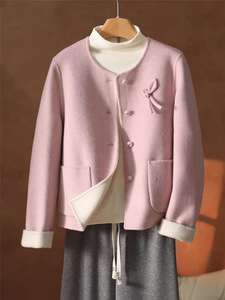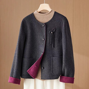 厂家直销双色双面羊毛大衣女短款2025新款气质时尚百搭羊毛呢外套