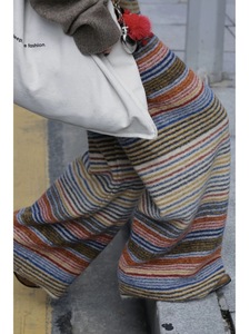 「现货」vintage复古撞色条纹针织直筒毛织休闲长裤秋冬