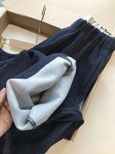 丹宁艺术裤~自带松弛感显瘦松紧腰羊毛蚕丝阔腿拉毛牛仔裤53029#
