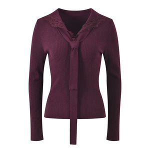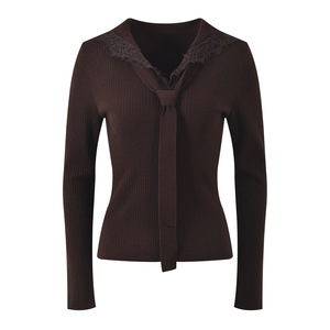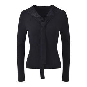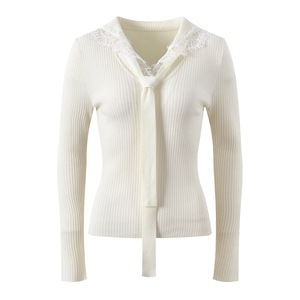 2025秋冬新款蕾丝拼接海军领胸前系带修身显瘦时尚百搭针织衫上衣