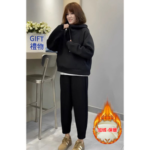 加绒加厚运动套装女秋冬季新款时尚连帽卫衣休闲时尚两件套
