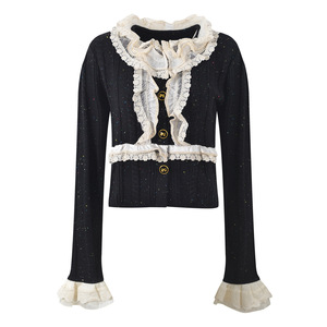 2025秋冬新款黑白花边拼接气质时尚优雅时尚减龄短款开衫外套