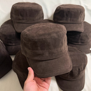 版型超正!复古深棕麂皮绒平顶马术帽子高端时尚洋气骑士帽报童帽
