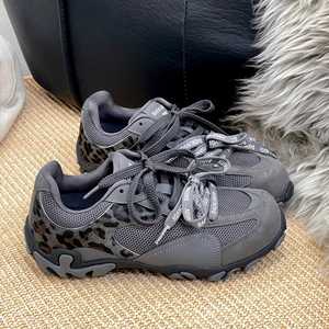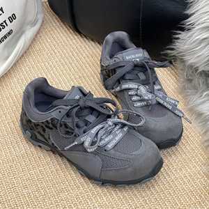 2025年秋季新款休闲慢跑拼色系带阿甘鞋平底潮款德训女鞋