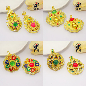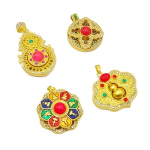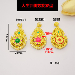 金店同款古法金四叶草罗盘项链人生四美葫芦如意锁八大守护神吊坠