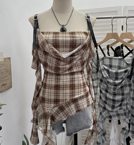 实拍 废土风荡领不规则荷叶边飘带上衣吊带一字肩长袖辣妹T恤1321