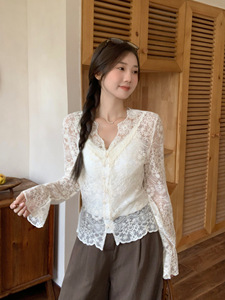 法式温柔重工提花蕾丝长袖雪纺衫2025秋季叠穿内搭打底衫绝美上衣