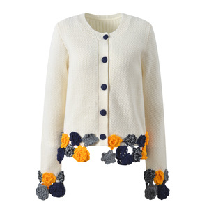 2025秋季新款设计感甜美风手工钩花时尚气质圆领针织开衫外套